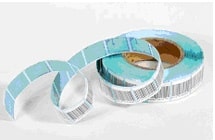 30 x 30mm square RF label. Resonance Frequency: 8.2 MHz +/- 5%. Quality Factor: > 60. Quantity per Roll: 1,000 pcs. White or barcoded.